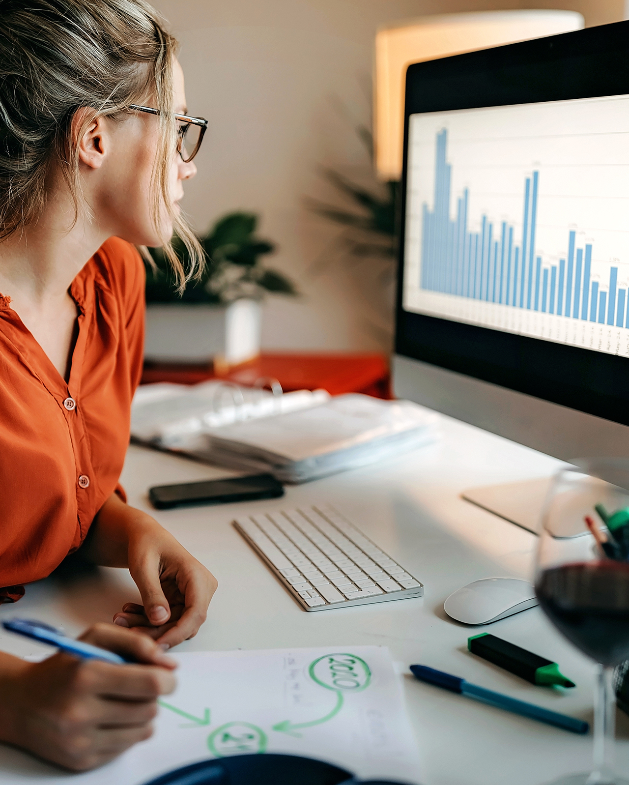 Donna osserva un grafico sul computer. Donna osserva un grafico sul computer.